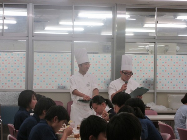 今学期も上記の日程で、アスリートメシ(通称:アスメシ)、スタディメシ(通称:スタメシ)、CaFeメシを実施しました。調理担当は食育実践科の2年生です。食事中には、それぞれのテーマに合う食育指導を行いました。生徒はクラスや部活動の仲間、担任の先生とともに参加し、充実した時間を過ごしました。
