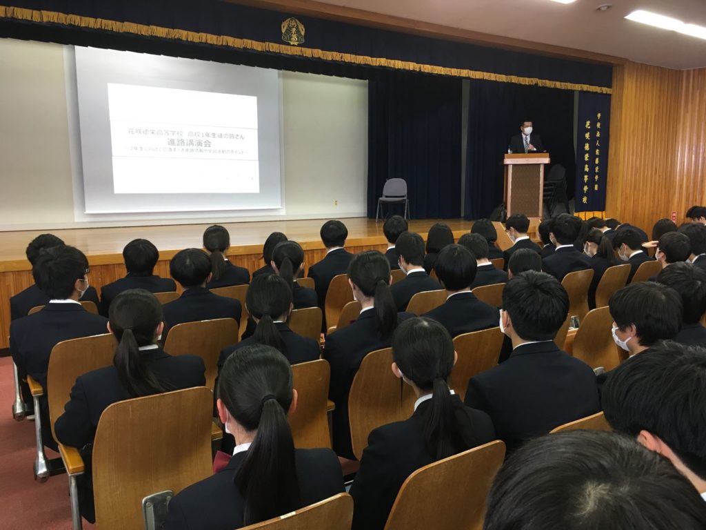 3月13日(水)1年生、14日(木)2年生を対象に、本校講義室で(株)ベネッセコーポレーション東日本教育支援推進部山田浩揮氏を講師にお招きし、進学講演会を実施しました。1年生は「2年生に向けて」、2年生は「3年生に向けて」、「意識すべき進路情報や学習活動のポイント」をテーマにご講演いただきました。各種データに基づいた、希望を実現するための生活を詳しくご説明いただきました。