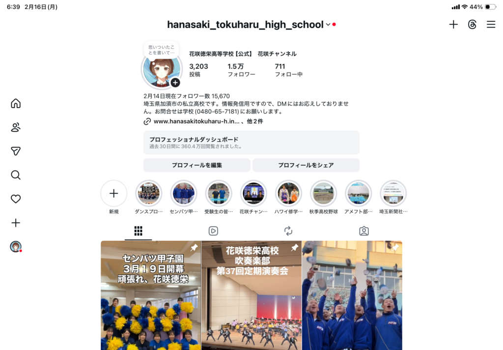 1年間の本校公式Instagramの閲覧数が4,000万回を超えました。多くの皆様にご閲覧頂き、誠にありがとうございました。今後も活発に配信していきますので、よろしくお願いします。学校公式Instagram(花咲チャンネル)担当