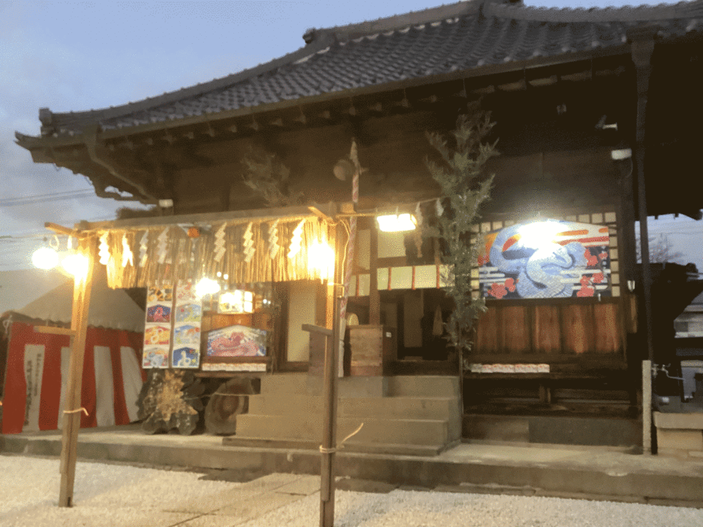 1月3日(金)美術部員が制作した灯籠にも明かりが灯り、日が傾いた境内は、幻想的な雰囲気に。