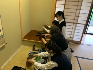 茶道部「花所望」のお稽古を行いました 中間考査明けの活動となりました。 6月に入り、お免状取得に向けたお稽古も進んでおります。 本日は、3年生が「花所望」のお稽古を行いました。 茶道教授駒崎先生が用意してくださった草花を、生徒が自ら選んだ花器に生けました。 まもなく引退の3年生、残りの活動を有意義なものにしてほしいと思います。