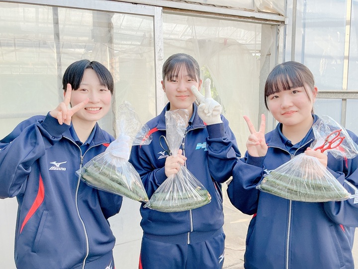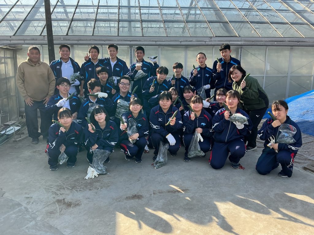 令和8年1月15日(木)、食育実践科1年生は、加須市内の農家さんにご協力をいただき胡瓜の収穫体験を実施しました。