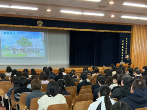 ご来校に感謝申し上げます ~中学1,2年生徒・保護者対象学校説明会0228~ 令和8年2月28日(土) 中学1・2年生とその保護者を対象に、学校説明会を実施しました。 校長挨拶に続き、大学入試を終えた3年生から、3年間の高校生活を振り返り、行事や学校生活、学習への取り組みについて紹介しました。 続いて、担当者より、教育方針、学科、授業や部活動等について説明を行いました。 説明会終了後には校内見学を行い、雰囲気を身近に感じていただける機会となりました。 ご来校ありがとうございました。 3年ぶり7回目の優勝 ~女子サッカー部 県民総合スポーツ大会兼高等学校女子サッカー新人大会~